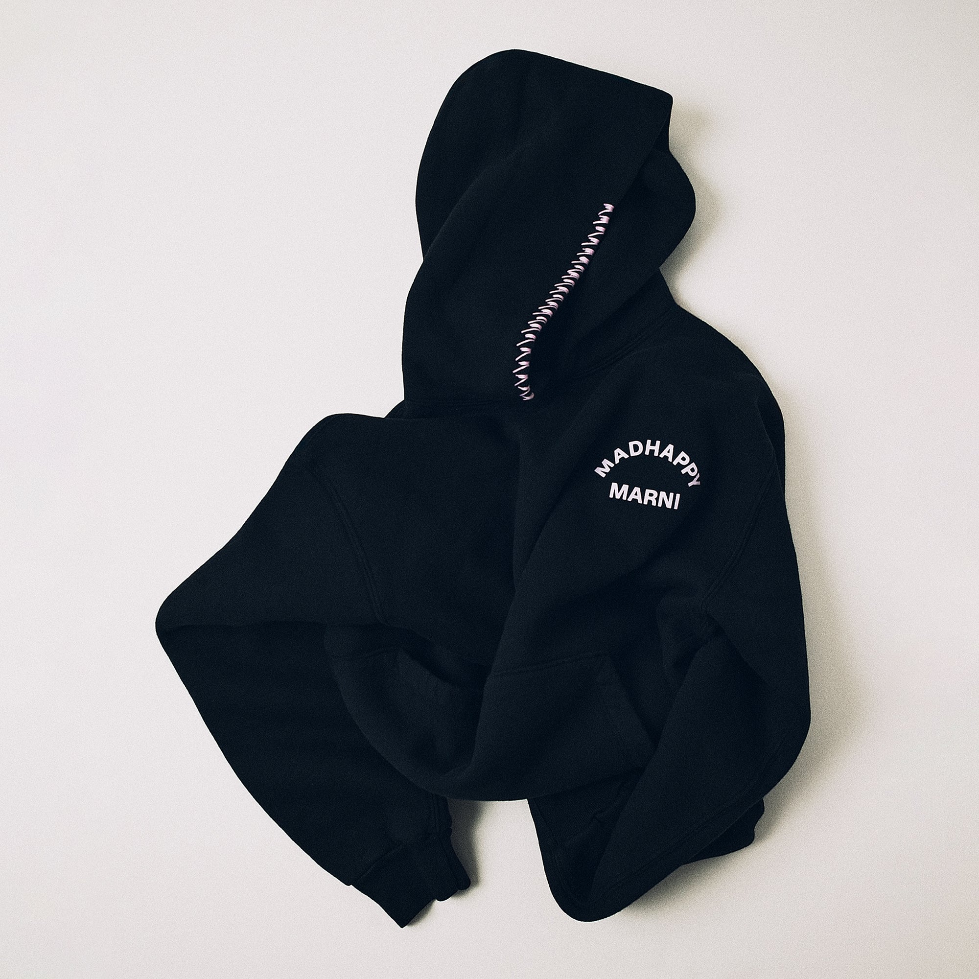 フードにMadhappyのアイコニックなオリジナルステッチデザイン